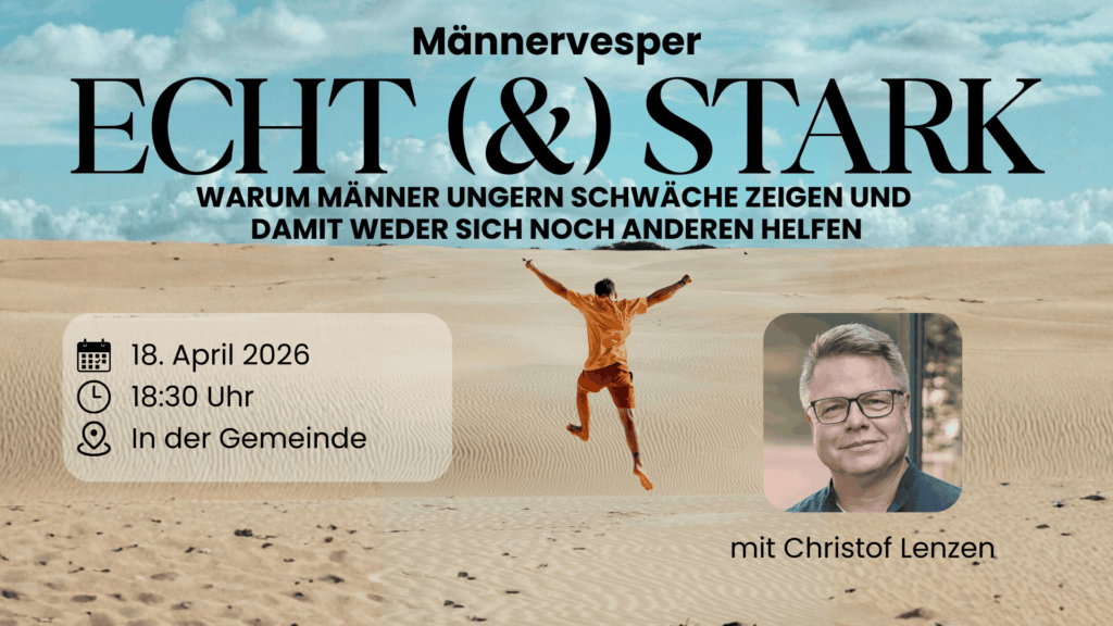 Beim nächsten Männervesper am 18. April um 18:30 Uhr spricht Christof Lenzen zum Thema „Echt (&) Stark!? – Warum Männer ungern Schwäche zeigen und damit weder sich noch anderen helfen“.