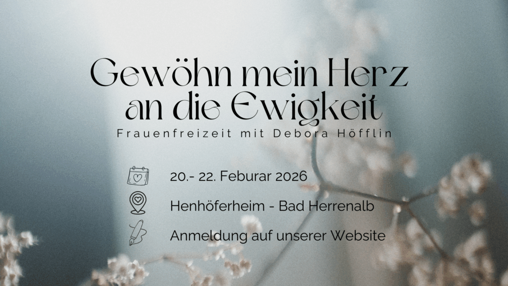 Unter dem Thema „Gewöhn mein Herz an die Ewigkeit“ wollen wir uns Zeit nehmen, neu auf das zu schauen, was wirklich bleibt – auf Gott, der unsere Herzen formt und erfüllt.